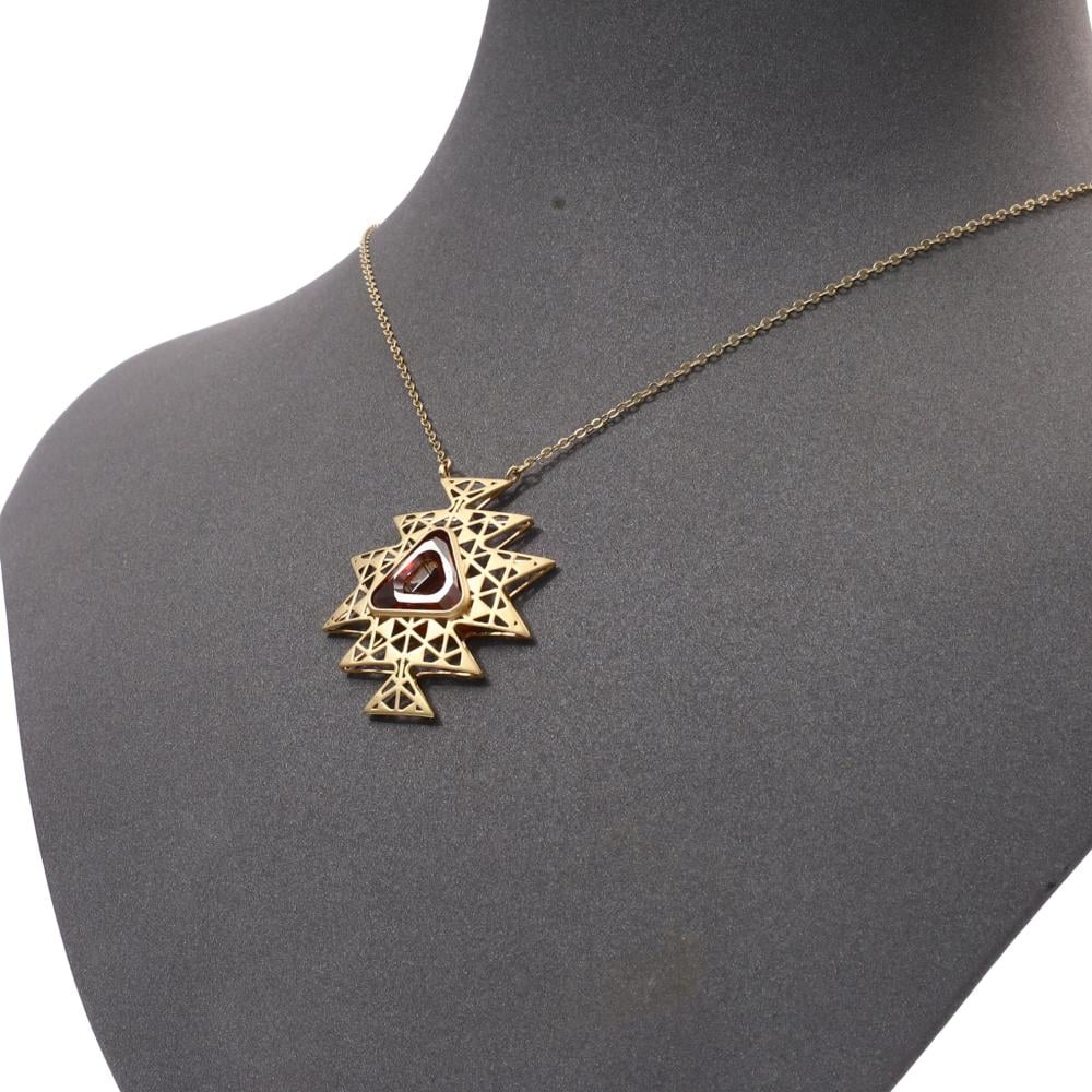 Here comes the Majd 1 gold pendant to be the heroine of your look. Designed with a modern spirit, this piece bears a name that reflects pride and honor, studded with a striking red stone that captures the eye and adds a captivating feminine touch. It's not just an adornment; it conveys a message of your taste and self-esteem.