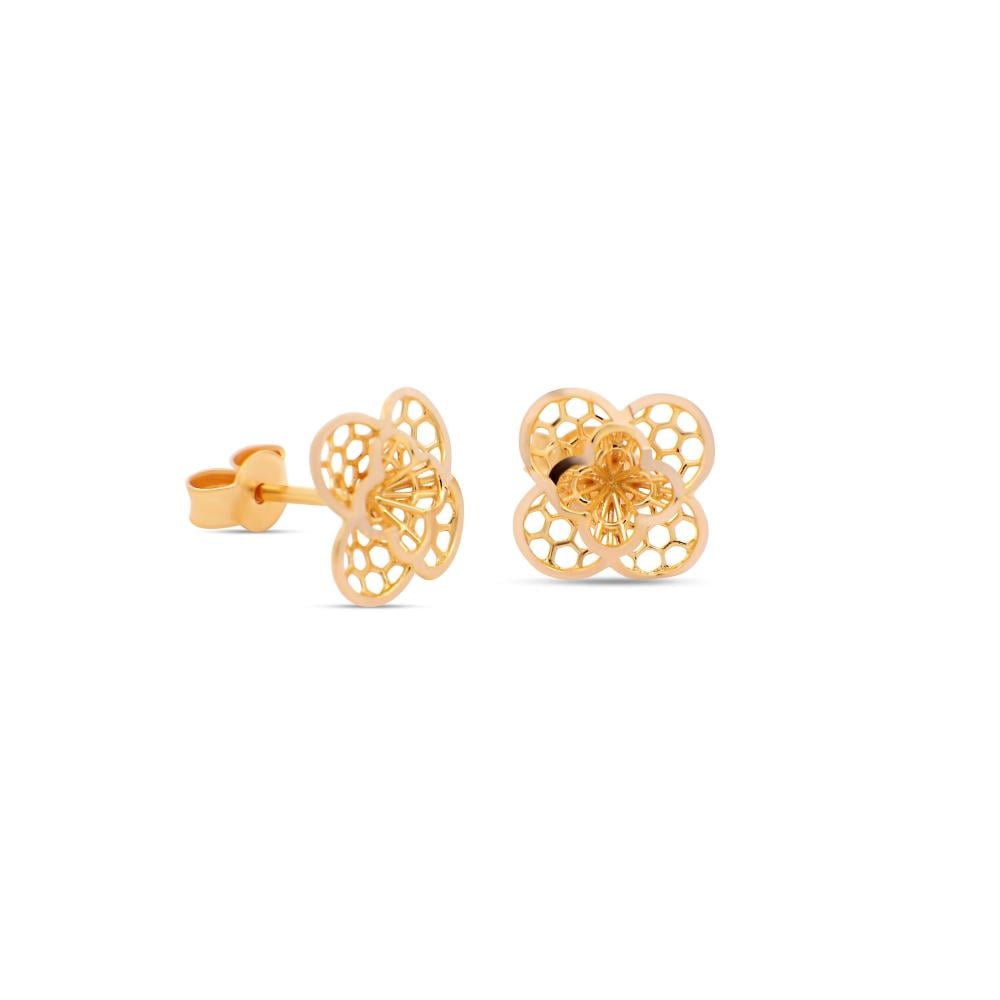 21k gold rose earrings with a delicate quadruple rose design Adds a touch of softness and light elegance that suits all occasions.